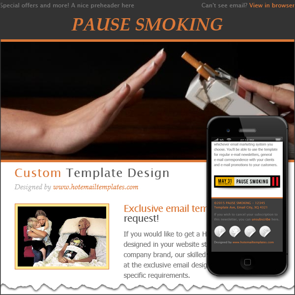 Use our FREE HTML email template to create nice looking and elegant email newsletters. With this professionally designed HTML email template you can give an attractive and eye-catching look to your messages that your recipients will appreciate.